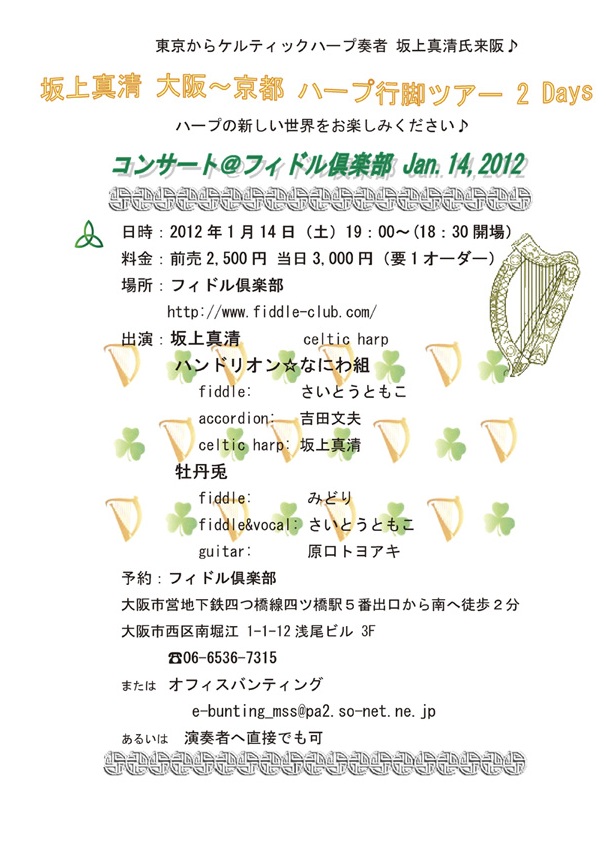 【坂上真清 大阪~京都 ケルティックハープ行脚ツアー 2 Days】