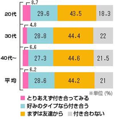 でも好みのタイプなら付き合ってくれるってのも大体の年齢層で30%弱居るって事は4人にコクれば一人からはOKがもらえるって事ですよね。