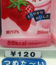 カロリー表示は良いんだけど・・・・ 2011/3/31 日記, 独り言 0 シェアする 0 ツイート 最近、街の自動販売機で 飲料のカロリーを表示しているモノが多くなってきましたね。 カロリー気にしている人にはとっても嬉しいです。 でもよく見ると100mlあたりのカロリー量 100mlで56kcalだったら全容量の250mlだと140kcal 56kcalと140kcalって全然違うんですが・・・・ でもパッと見、56って数字が目に入るわけで。 なんか騙されちゃってる気がします。 ってこんなこと思うのは自分だけかなぁ~