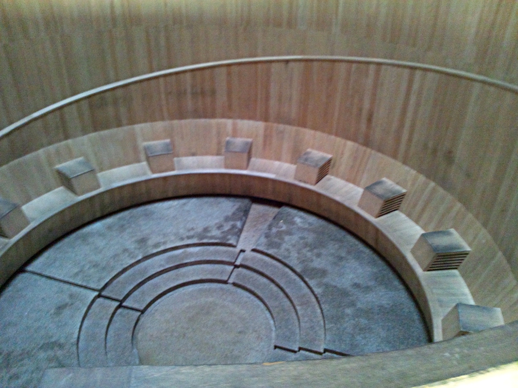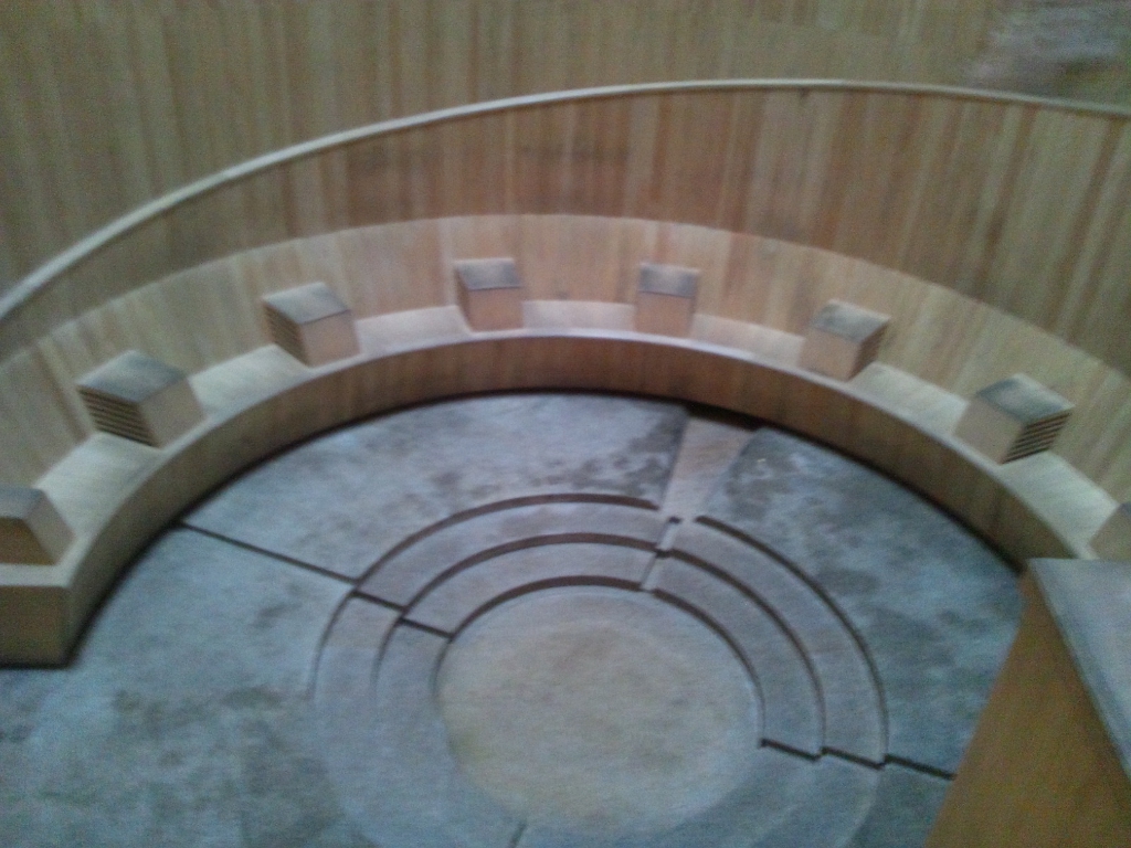 そして下には石で出来た床の上に木製の椅子が並んでいます。